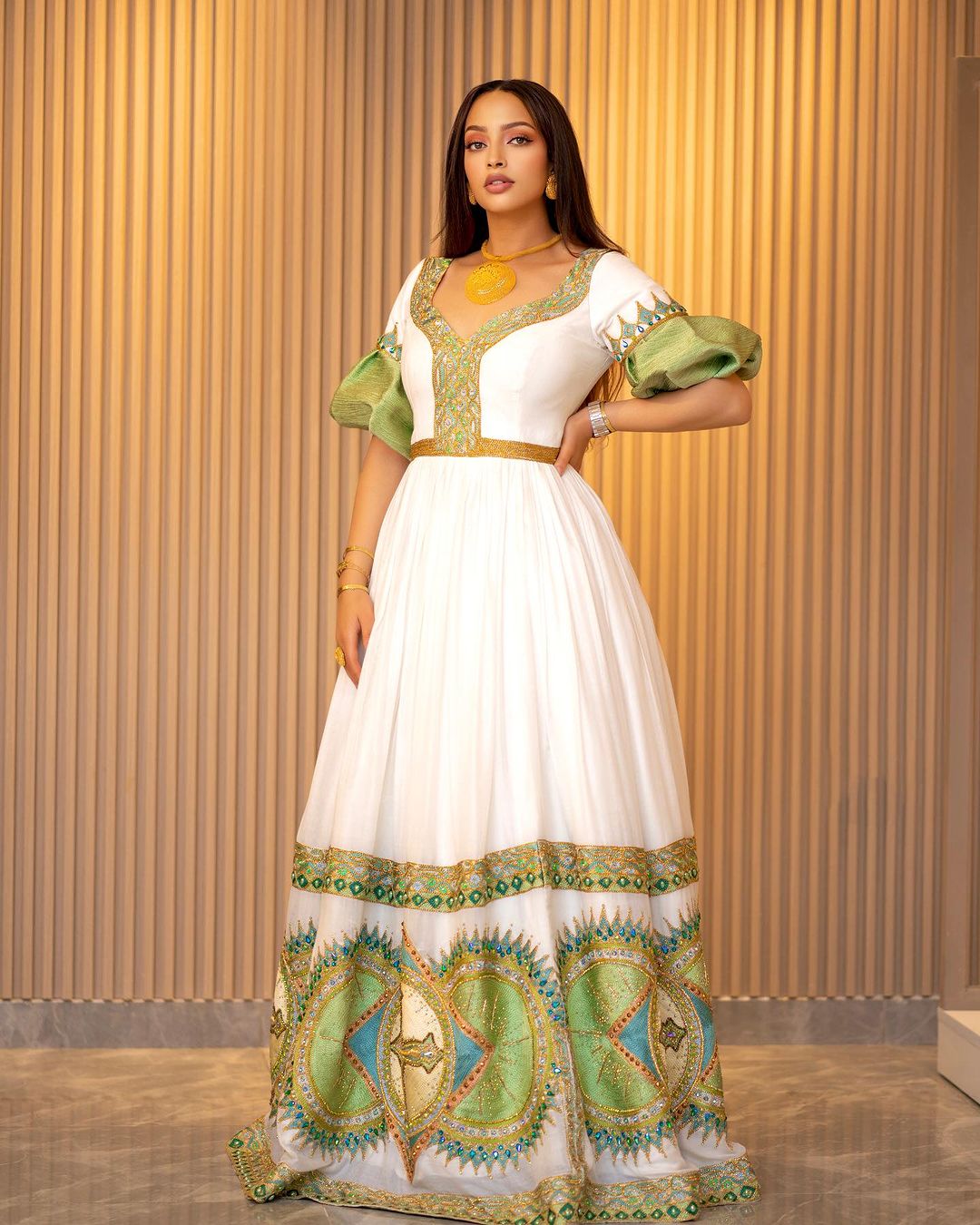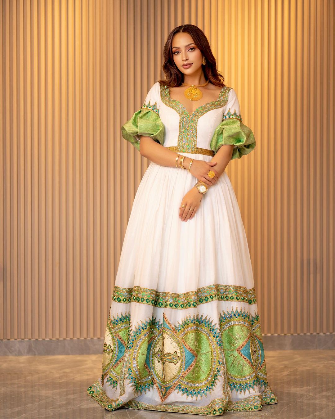 Step into a world of timeless elegance with our beautifukl Habesha kemis—an ethereal masterpiece handwoven and delicately embroidered with menen fabric, cotton, and thread material. This gorgeous Ethiopian dress, a true celebration of cultural heritage, transforms your wedding day into an enchanting affair. The stunning color design adds an extra layer of beauty, ensuring that every moment is adorned with the grace and sophistication embodied in this exquisite Habesha dress. Embrace the richness of tradition and the allure of modern craftsmanship on your special day with our Wedding Habesha Kemis.