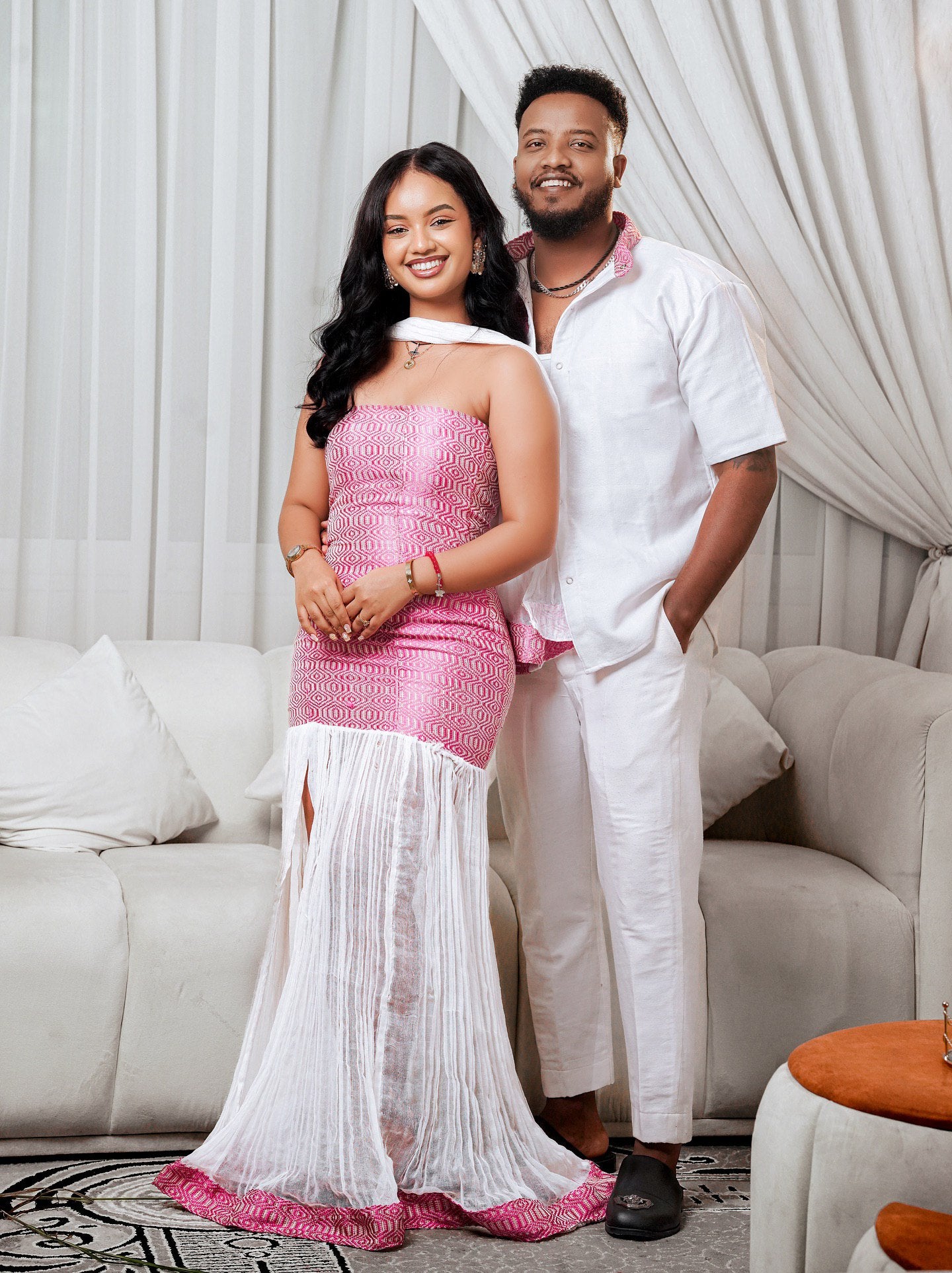 Modern Pink & White Ethiopian Couple Outfit Matching Wear for Couples Cultural Ethiopian Wear 150
